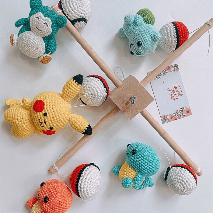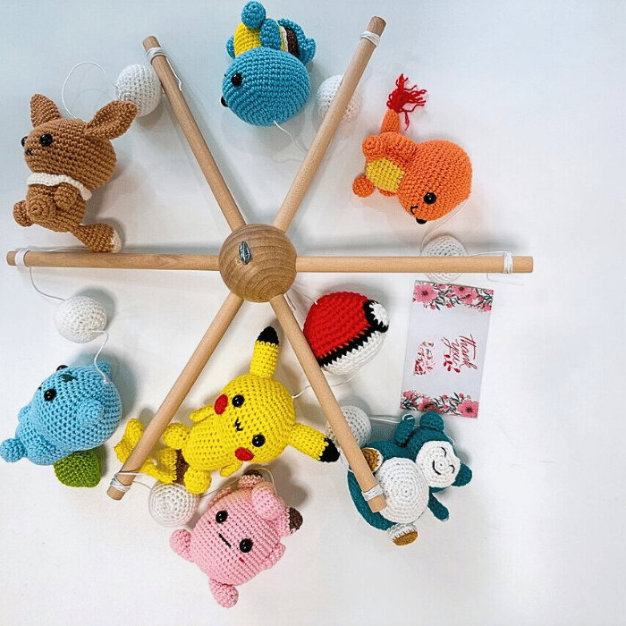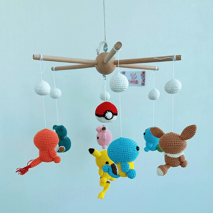 This charming mobile is perfect for adding a playful and whimsical touch to your baby’s nursery. Each Pokémon character is carefully crocheted with love and attention to detail, ensuring high quality, safety, and durability.
