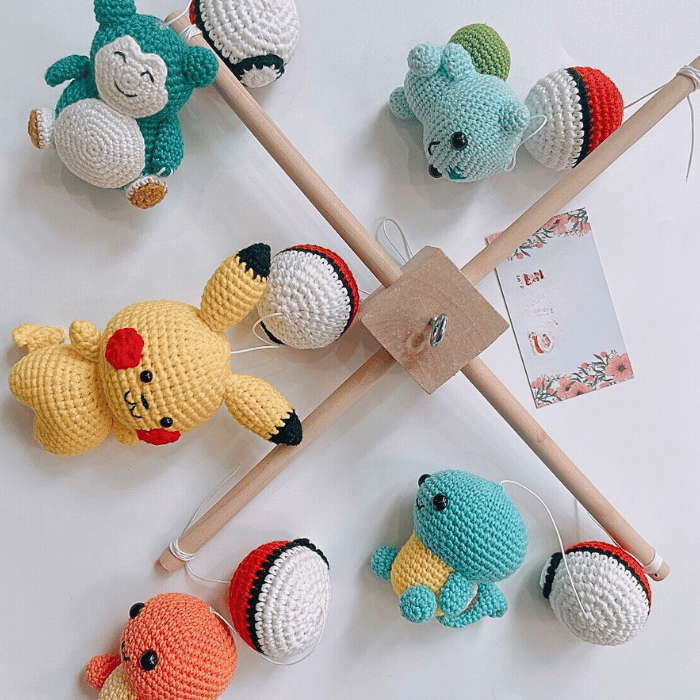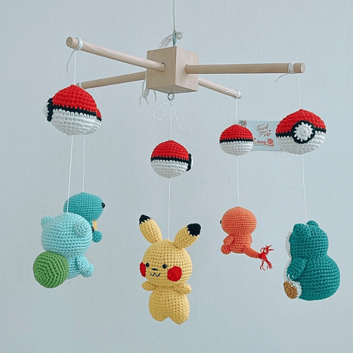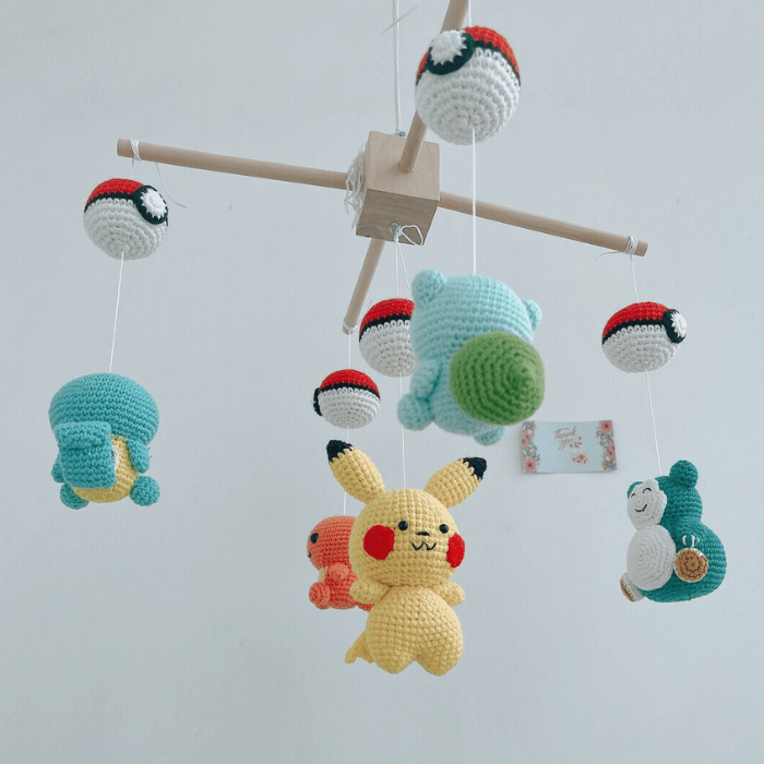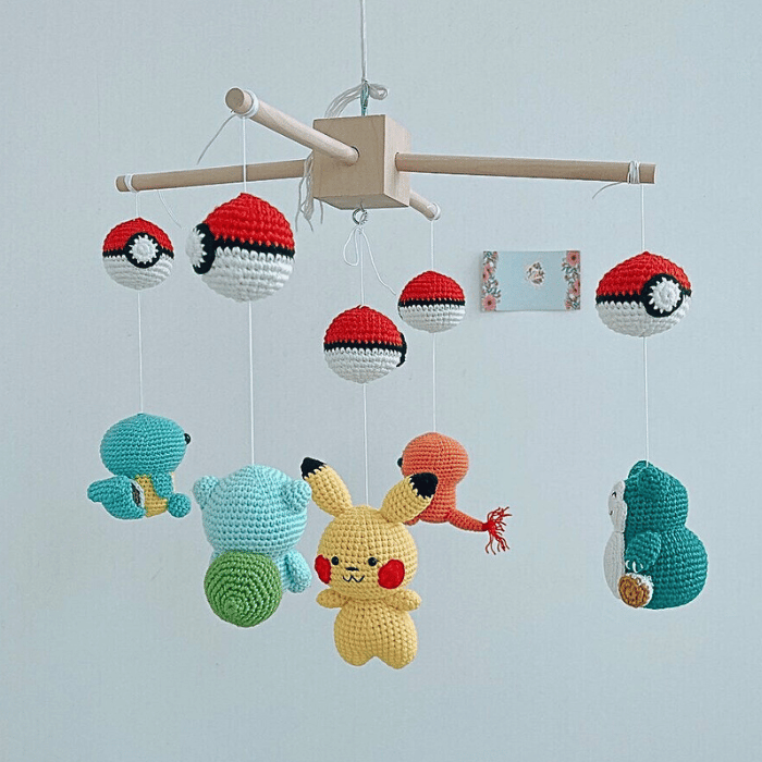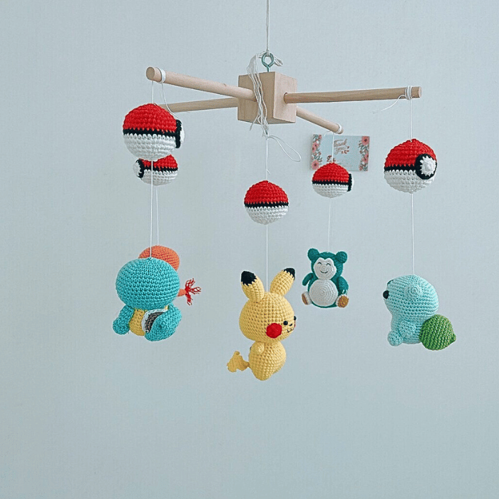 Crochet Baby Mobile Set – Pokemon Pikachu & Friends | Portable Crib Mobile | Nursery Décor | Unique Baby Gift